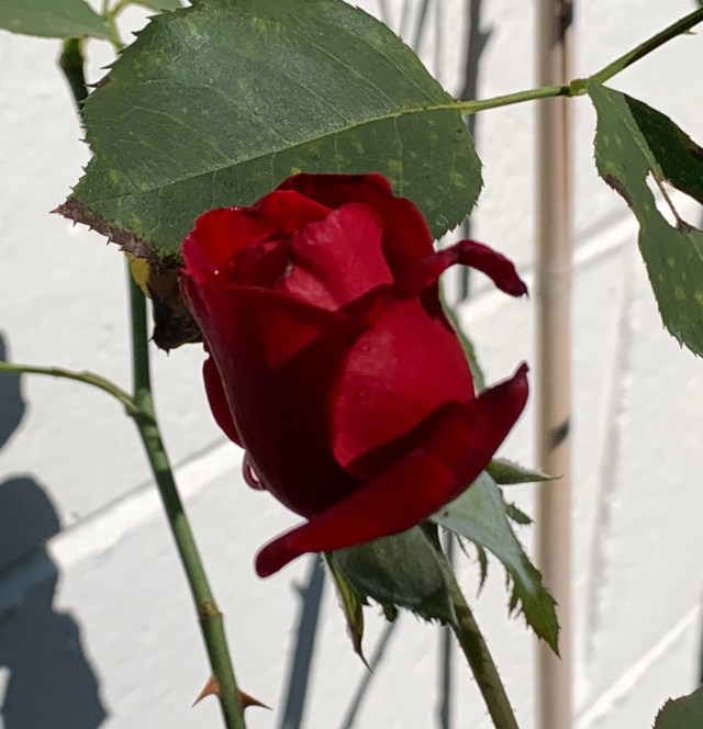 Ev’s roses are enjoying the pretty weather – they’re getting prettier! I took this picture yesterday around noon: