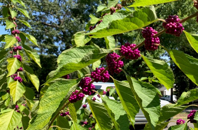 Beautyberries from today on the northeast corner of our house. Their name is well-deserved! And they’re native!