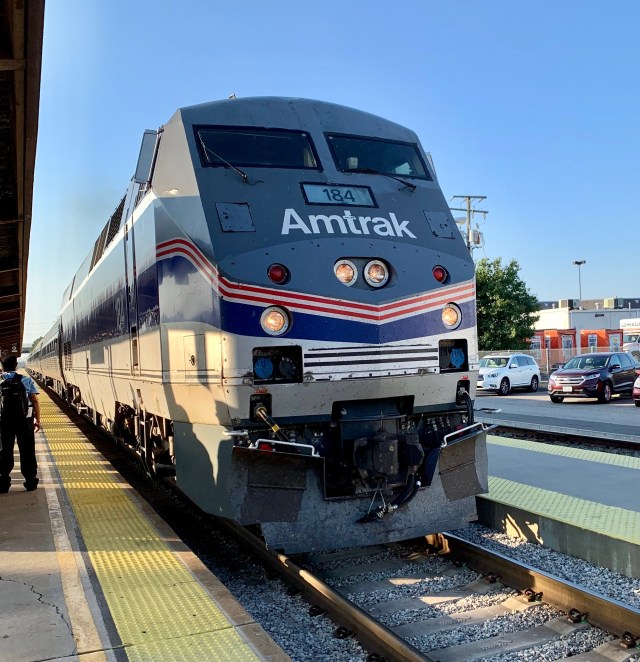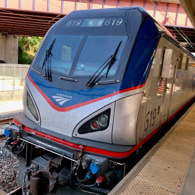 But wait a second – here is the train we rode north yesterday morning – Amtrak locomotive number 184, a P42DC in the Phase IV paint scheme. It’s a long story even by train nerd standards, but Amtrak repainted a handful of locomotives to commemorate their 40th anniversary in 2011. Here’s the locomotive that pulled us from Richmond to Washington. It’s a diesel locomotive. In Washington they take the diesel locomotive off and pull the rest of the way with an electric locomotive: