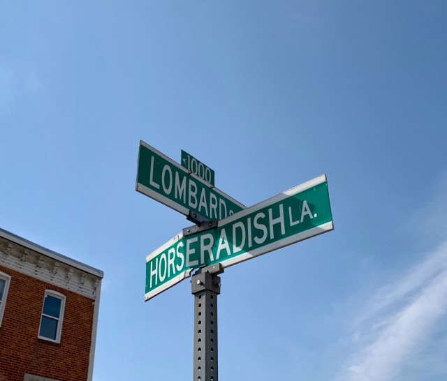 Street sign in front of Attman’s (on Corned Beef Row):