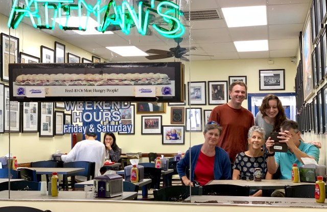 So – people too! And food, of course! Here are the five of us at Attman’s today at 11:52. Out of the five people in this photograph, only one is an enthusiastic photographer, and you’ll notice his obliviousness in blocking out his own face: