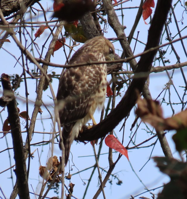 Part of being “blown out” this week means I’m relying more heavily than normal on raptor pictures, which I realize are not everyone’s favorite. But I got one in the woods at Pony Pasture yesterday while I was hiking with Mackey and Turner. No one will be surprised that I spend a lot of time in Pony Pasture, but it’s quite rare to see a Red-tail in the woods. This isn’t the first one I’ve ever seen there, but they’re non-typical. Yesterday afternoon at 2:00: