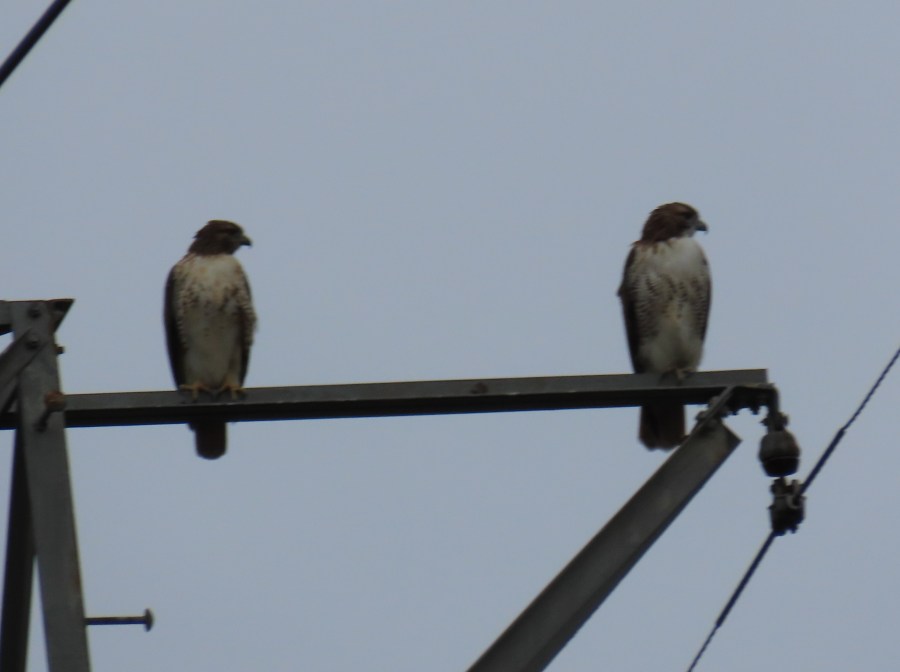 Better light would have been nice, but any “double” Red-tail picture is a prize