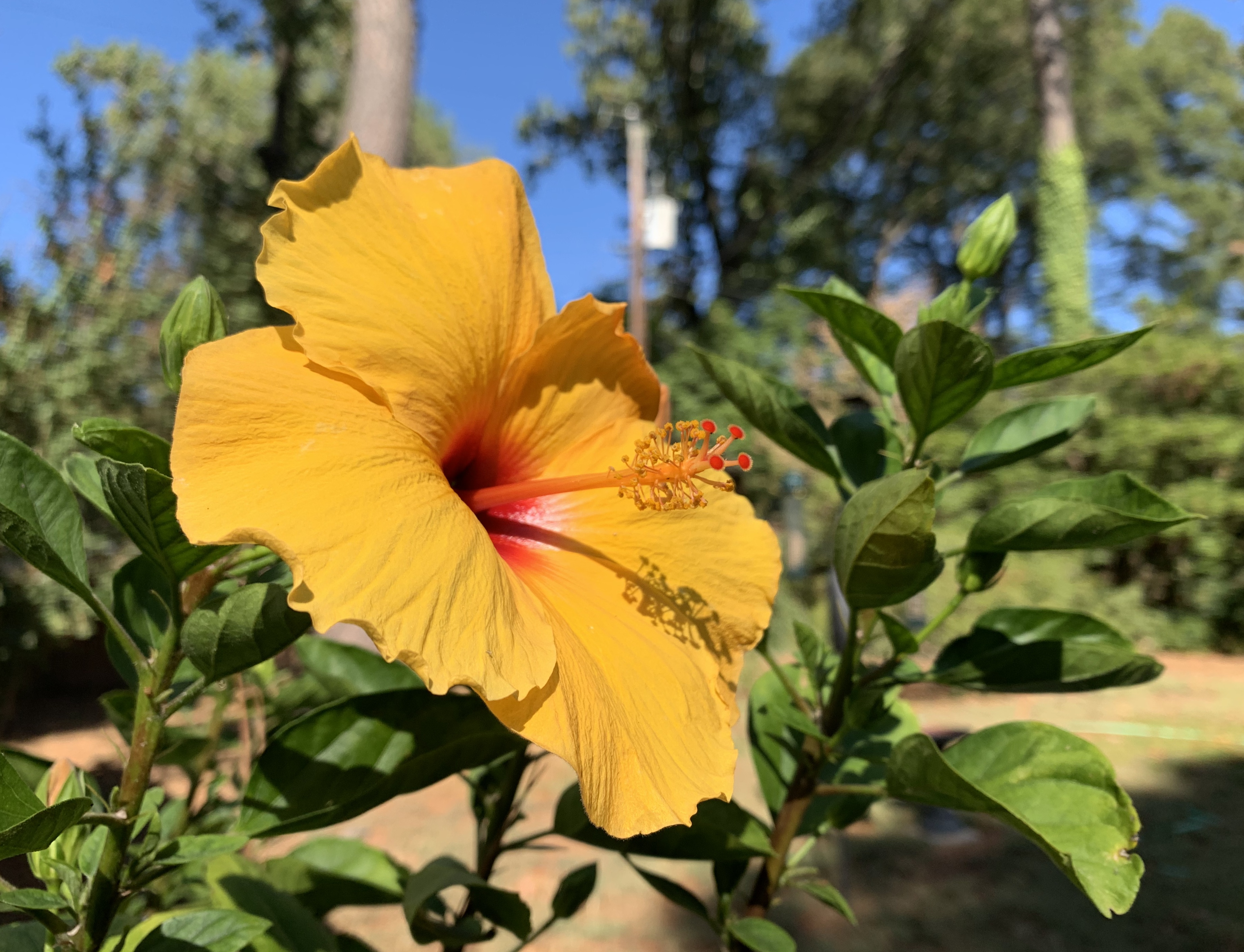 Hibiscus OMG – look at that petal, that shadow, that sky, those trees – beyond compare