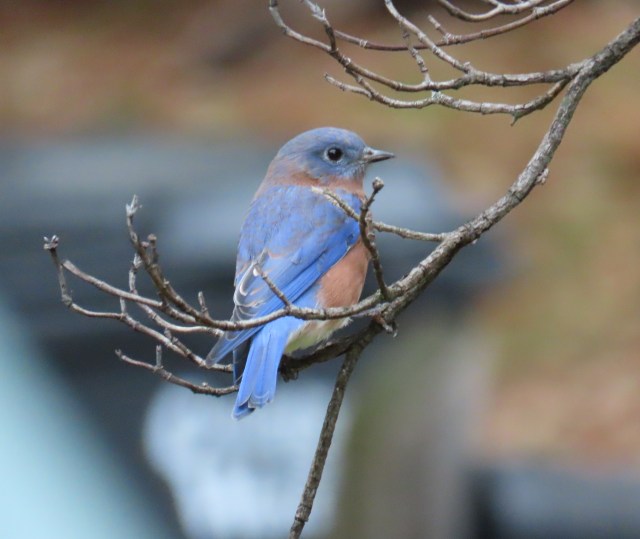 Next month, incredibly, will mark seven years since my dad died. I don’t think of dad often, but if I’m a hundred years old and see a bluebird perched in a dogwood tree, dad will be the first thought that comes to mind. I didn’t move from photographing that hawk to photograph this bluebird. Just zoomed back and focused in our front yard. Dad’s favorite bird perched in Dad’s favorite tree: