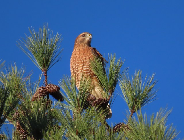 I try to get at least one image I really like every week; I’m not always successful. Fortunately this week I heard this Red-shouldered hawk screeching in a loblolly pine at 8:30 Monday morning. The air was so clear and the sky was so blue and the light was so spectacular I started the week off with a pretty one: