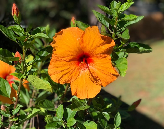 Monday was October 28; it is real, real late in the year (IMO) for a hibiscus to continue flowering. It’s getting much colder now; this may be the end for 2019. But maybe not! This is from Monday. Every one is like a miracle: