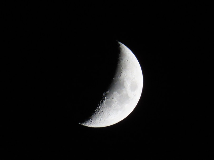 5.8 day old moon, waxing crescent, 36% full: