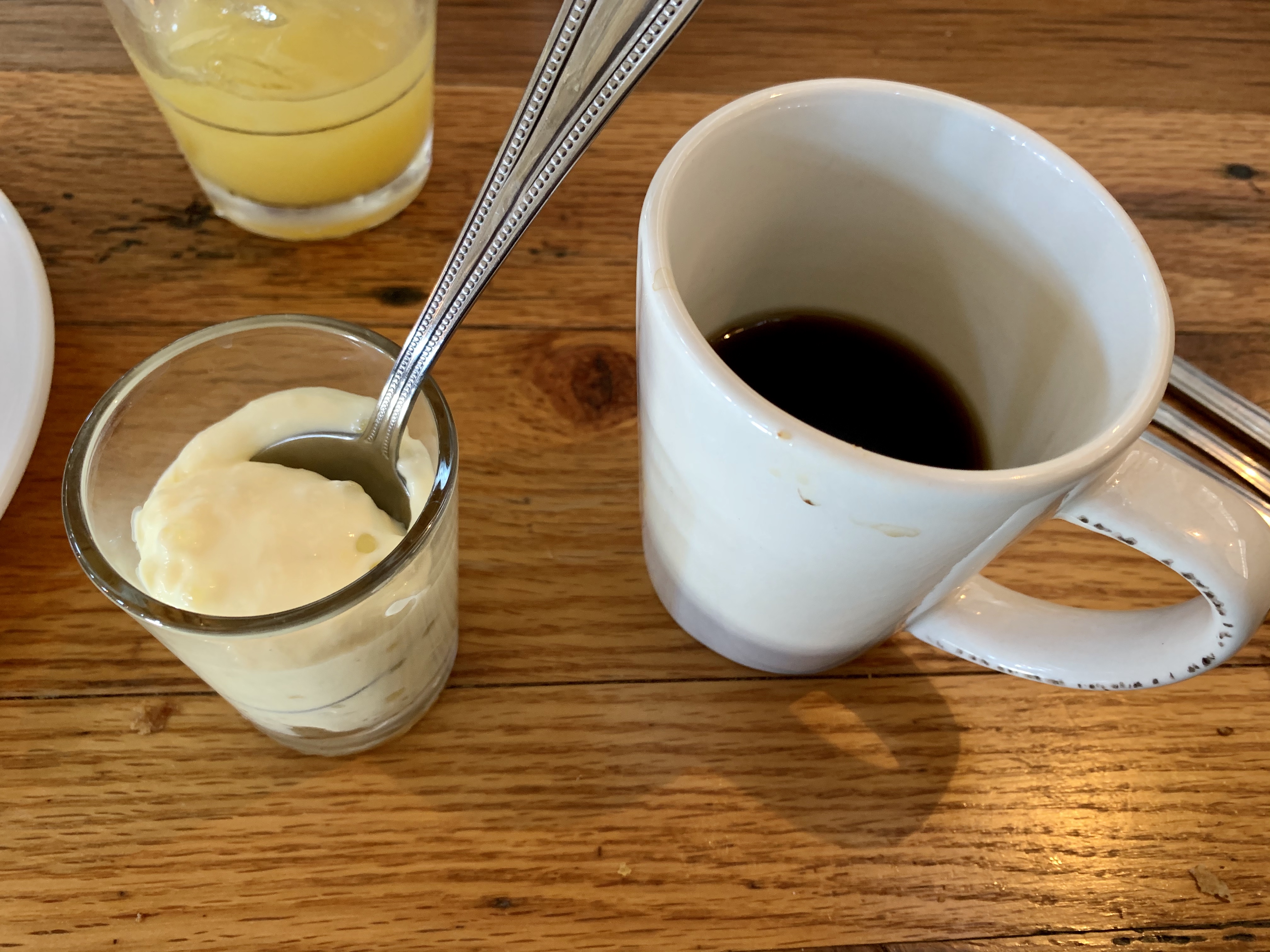 Tapioca on the left. Almost like ice cream only not as cold, and with “pearls.” Try some if you haven’t.