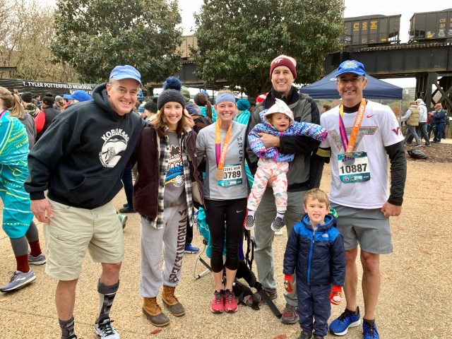 The two people wearing medals in this picture are my brother Shane’s wife Kristin and my brother Kevin. The picture was taken a few minutes after Kristin and Kevin both finished the Richmond Half Marathon in under two hours!