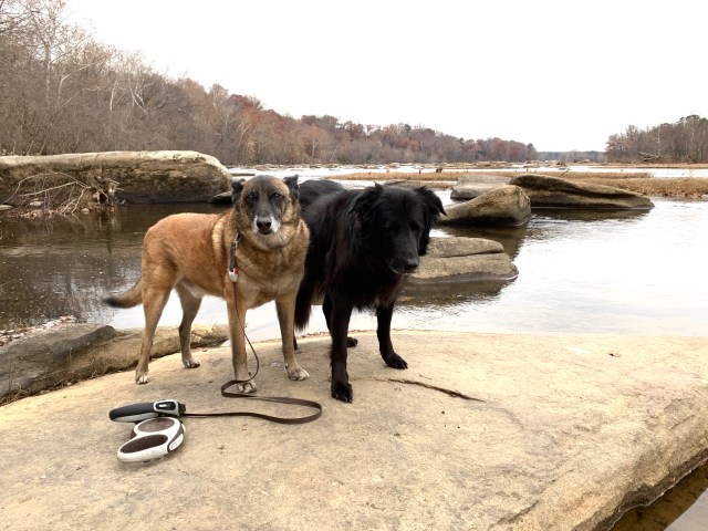 Lola (left) and Luna at the river yesterday morning: