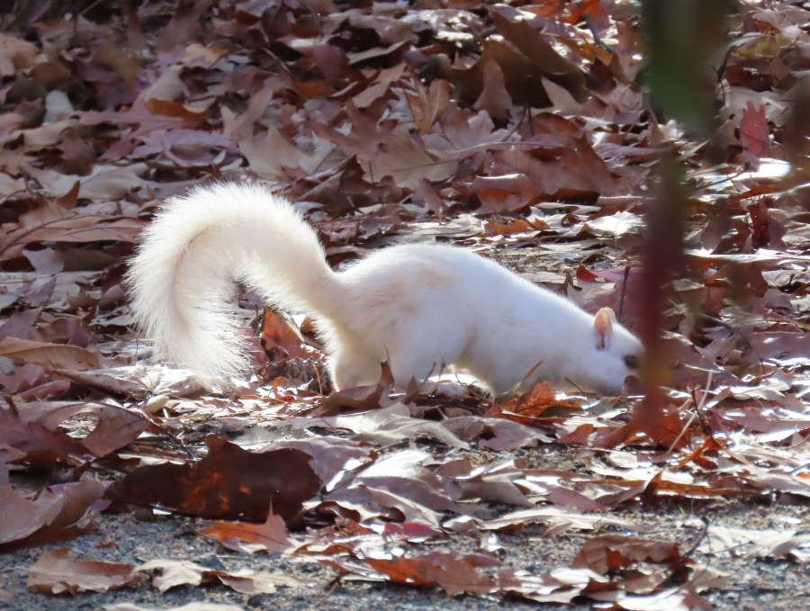White squirrel with the sun behind it
