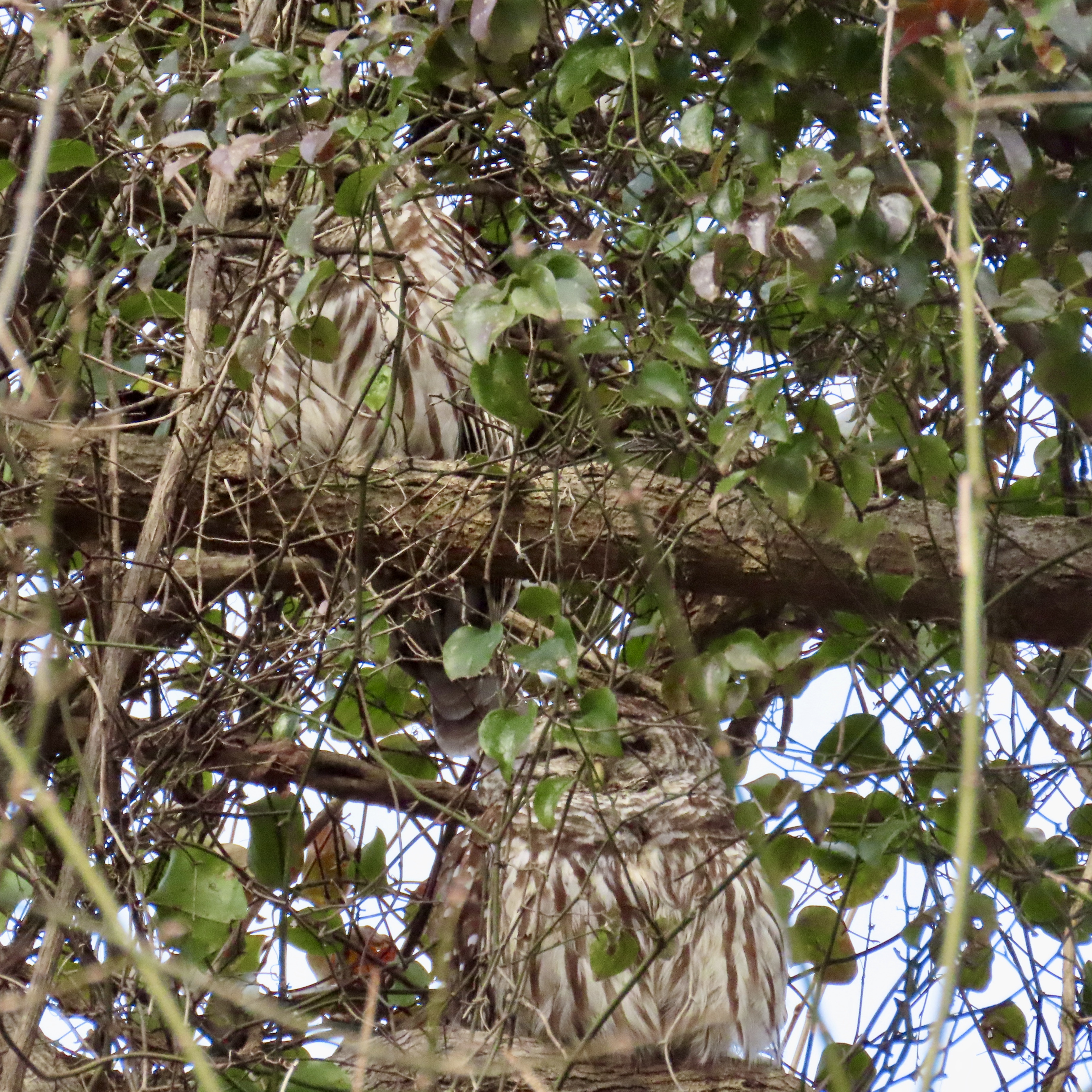 See them both? Now look back at the 1st picture – you can see the tail of the 2nd owl. Wild.