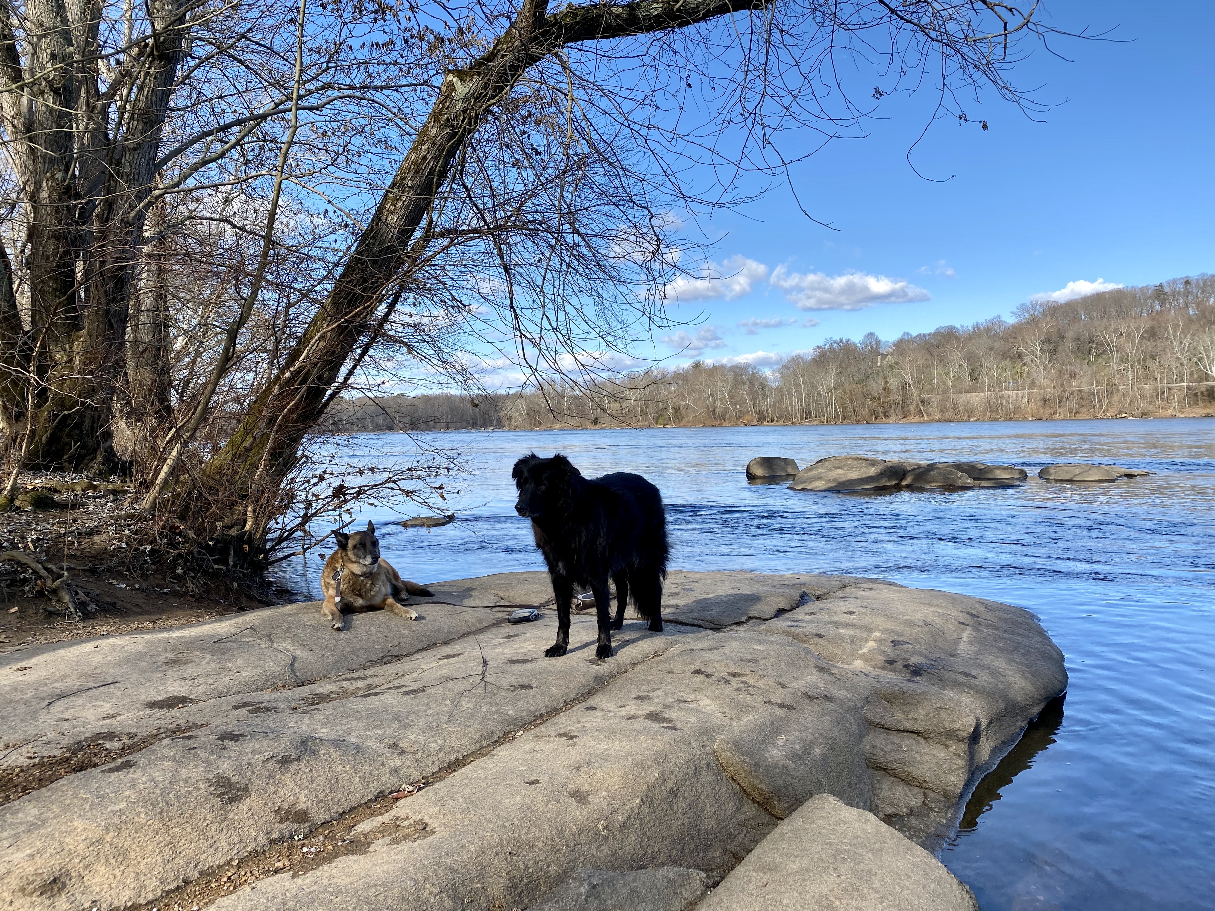 Same river, same rocks, one of the same dogs, nine years later: