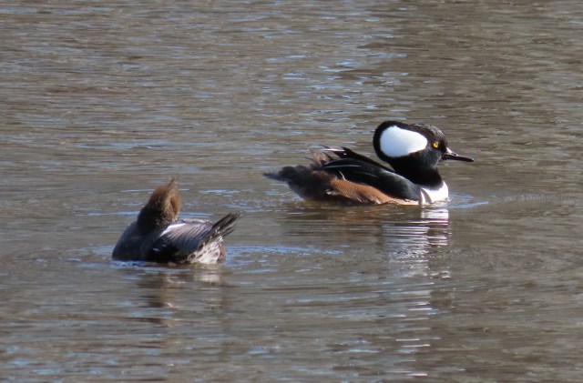 I’ve seen a lot of Hooded Mergansers this year, but never gotten a good look in good light. I caught up with this pair earlier in the week. The male came out okay but I never got a solid look (with my camera) at the female. Hopefully next time: