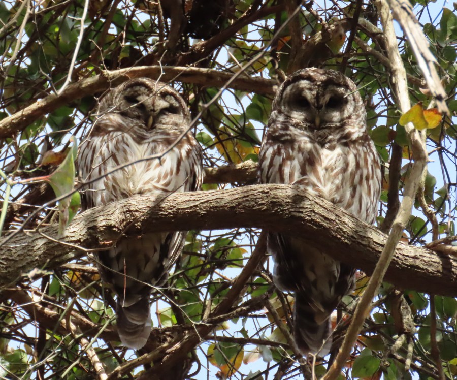 Same owls (presumably) on the same branch (that is a fact)