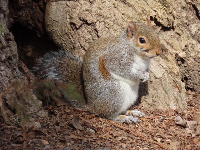 I saw a squirrel hunched in the cold one morning this week. They like to soak up the sun, but they can (this one did) scoot right up the tree at a moment’s notice:
