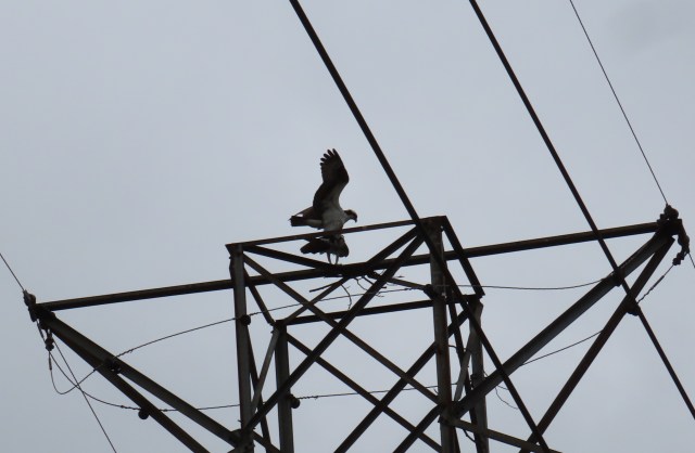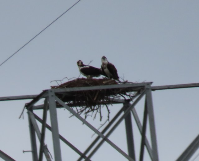 If one of those ospreys flew north along that powerline for three miles they could land in this nest – but this is a different pair of ospreys. Same powerline, different ospreys, three miles north. Sorry about the focus – my mistake:
