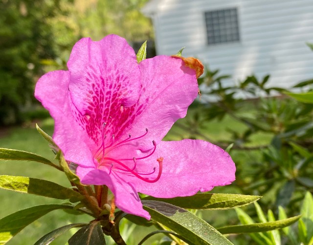 Evelyn took this picture of one small azalea bush in our backyard. I was looking at pictures of different flowers on an instagram nature page. It had a quote by a philosopher named Iris Murdoch. I’ll use it as the caption for this picture; it’s made for this picture: