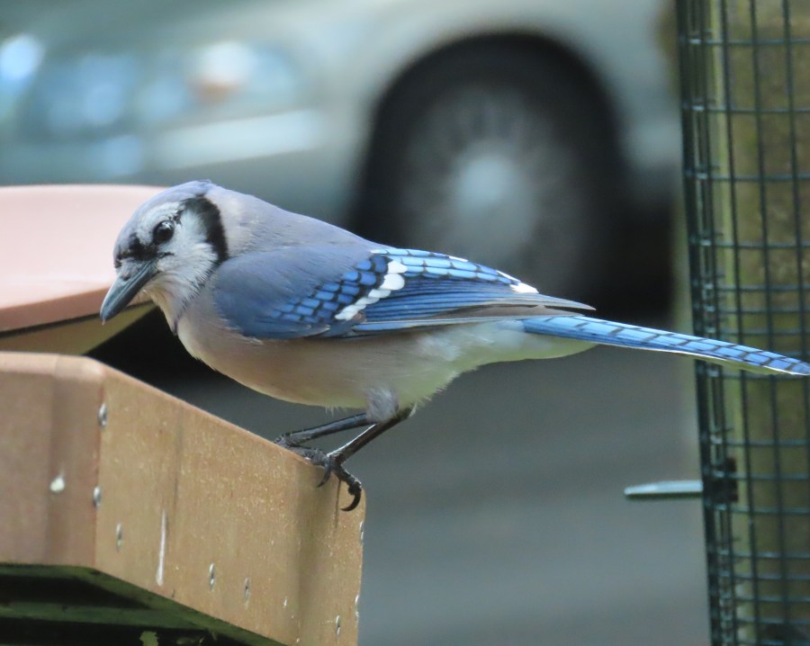 Bluejays dominate the feeder. But crows run them off.
