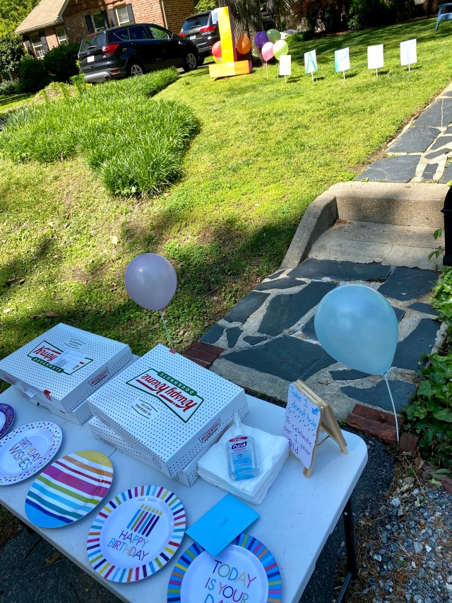 This was the table that greeted all of Austin’s guests yesterday. VERY social, though of course we all kept our distance. Note the bottle of Purell doing double duty as a paperweight. When people look at pictures from this birthday in the distant future they’ll reliably say “oh, Purell, right, coronavirus, that must have been the Spring of 2020.” But – there were doughnuts! Thank you Austin! That’s how you put the “social” back in “social distance.” Happy Birthday Austin!