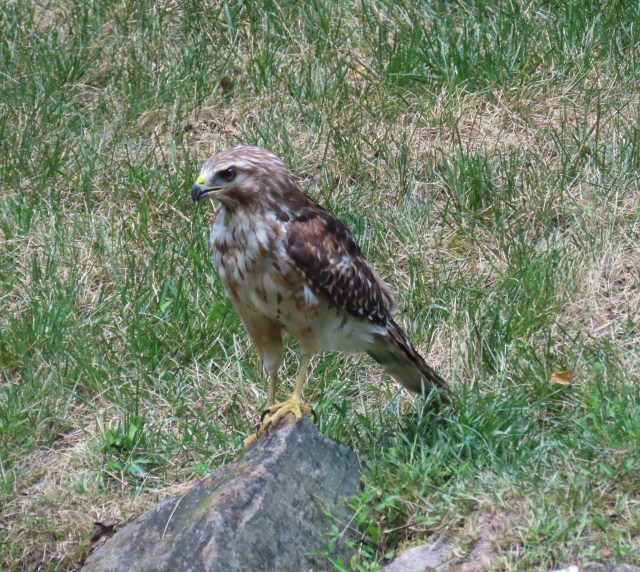 When I was driving down the driveway, this young Red-shouldered hawk was perched on the fence:
