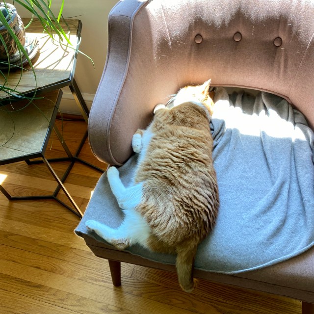 I like more air conditioning, Evelyn and Dash like less. Here’s Dash lying with his head in the sun: