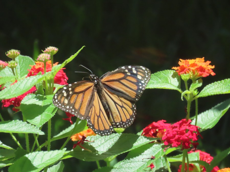 Monarch butterfly on the flowers Evelyn planted – right outside my office window!