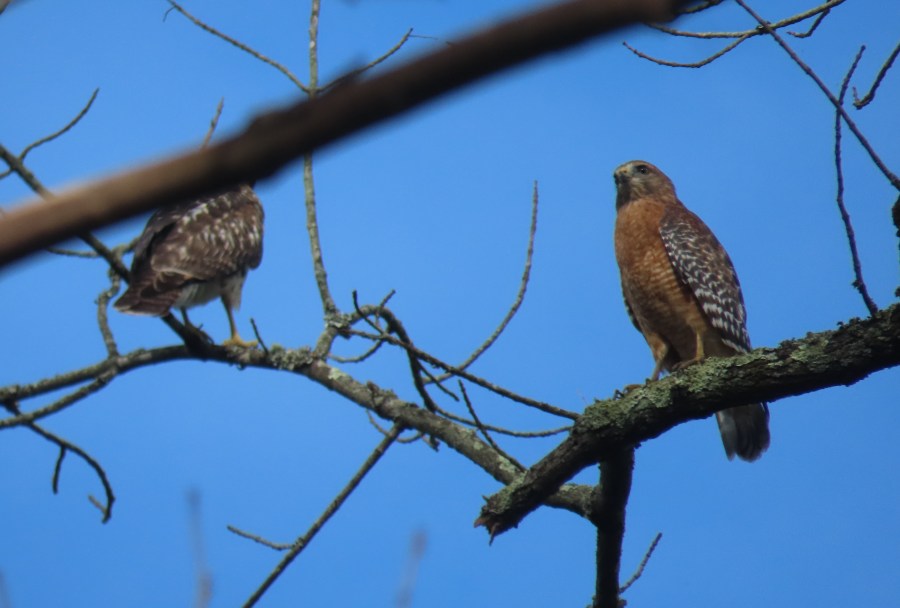 Adult red-shoulder on the right, juvenile not very visible on the left