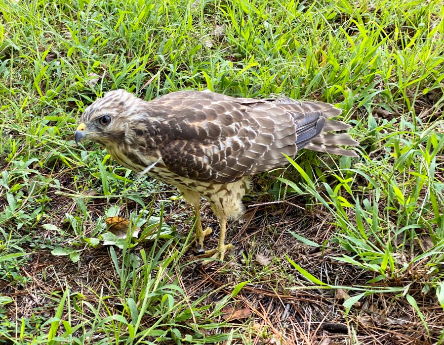 Young Red-tailed hawk (Buteo jamaicensis) on the side of Three Chopt Road Monday morning: