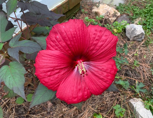 It’s the second half of September; days are getting shorter and autumn officially begins (here in Richmond) Tuesday morning (9/22/2020) at 9:30. There are still plenty of bright, gorgeous flowers, even a few that smell great, but enjoy them while you can – they’ll be finished for 2020 real soon. But not yet! Here’s one of Ev’s wine colored hibiscuses. I took this picture Thursday morning: