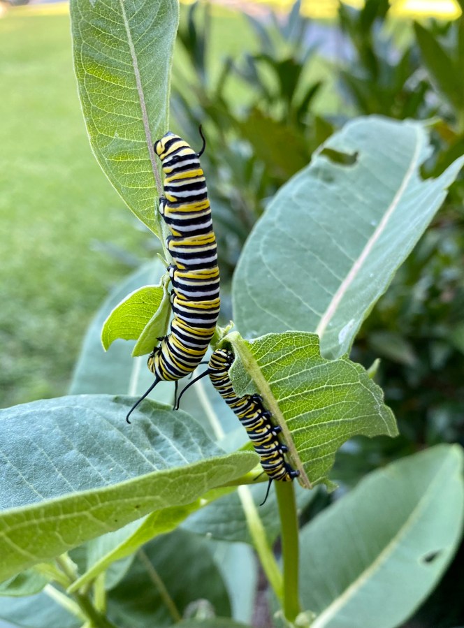 The milkweed is pleasing the the caterpillars; the caterpillars are pleasing to me