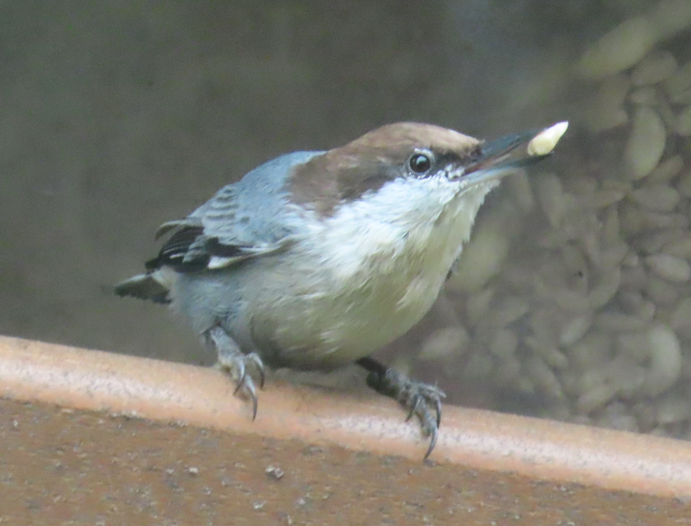 Brown-headed nuthatch yesterday, headed for a tree to hatch that nut