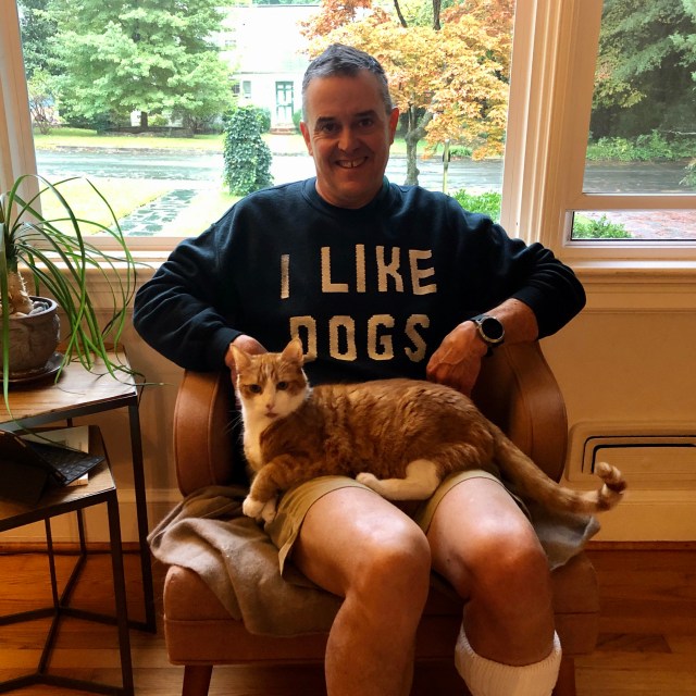 Evelyn took this picture Monday. I put it on social media and a lot of people have already seen it; sorry if this is 2x for you. But it’s a fun picture. Ev gave me the shirt years ago. Dash was pointing out that, although I may “LIKE DOGS,” only cats are allowed to sit in my lap. He never lets them forget it: