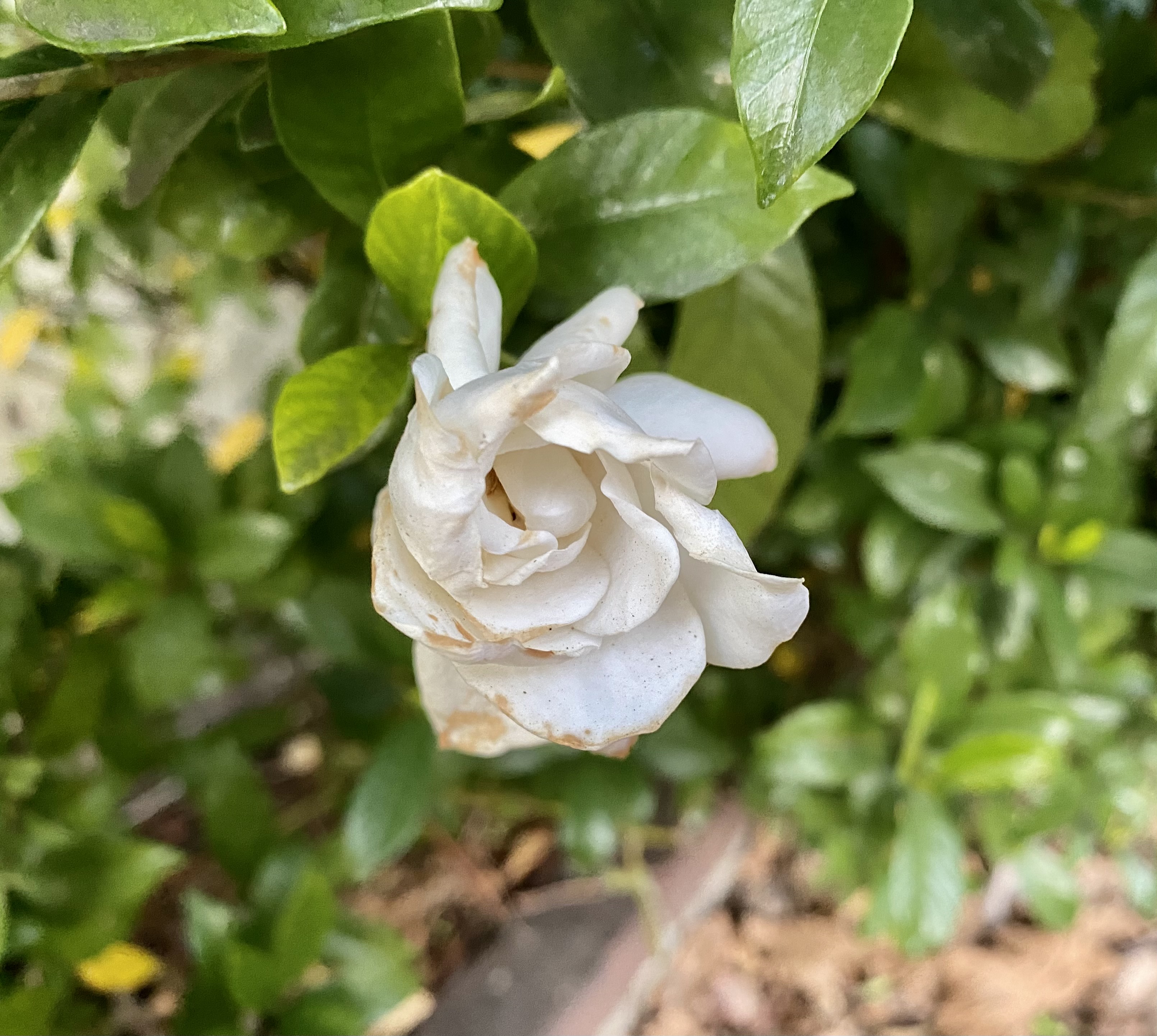 Speaking of treats. This week’s post is going to be short, and I hope sweet. To that end, I saw a blooming gardenia on Tuesday! It’s a little faded, but that was the time of day – I guarantee if I’d been there around noon it would have been glorious. And it still smelled glorious! I had no idea a gardenia could bloom in November: