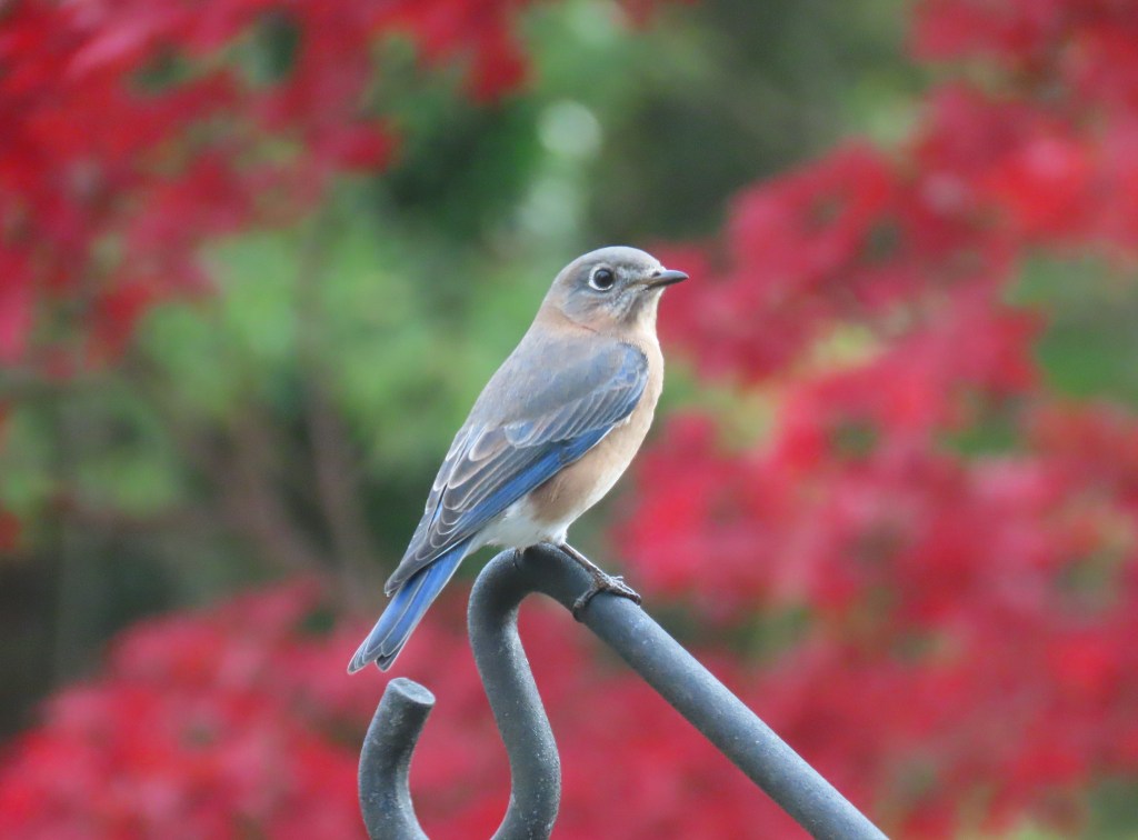 Bluebirds are not bright blue in autumn, but this one was cute sitting on one of my feeders at 2:00 this afternoon. I like it with the reds and greens in the background. Colors will continue to fade as the daylight shortens, but bluebirds are always a treat. And I’m looking forward to next week’s blog post! I hope you are too! Have a great week, all best,