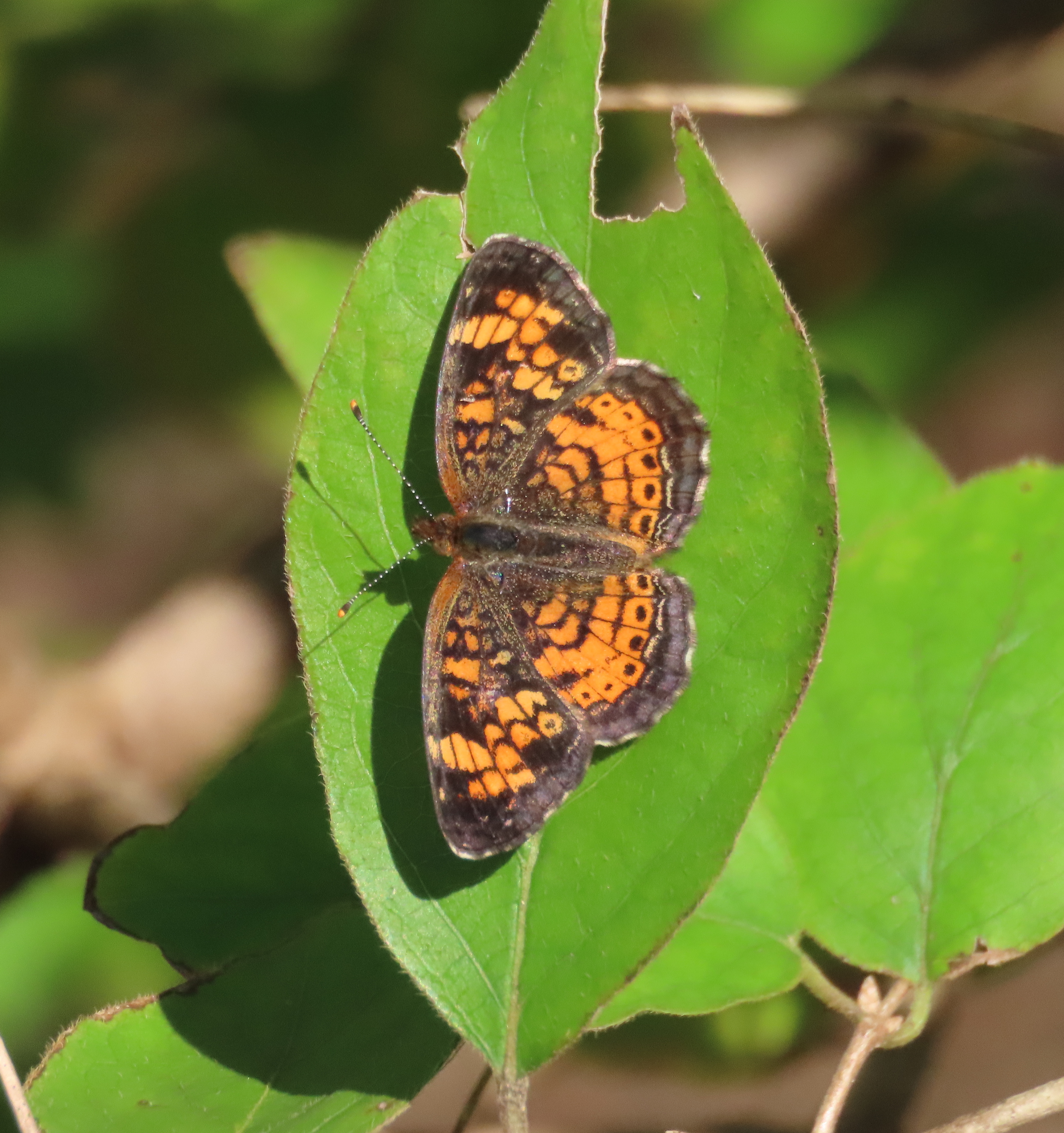 The dogs and I missed our Sunday hike last week (11/15/2020) because the river was still flooded. It had gone down a lot and dried out some by Tuesday so Mackey and Turner and I took a quick jaunt Tuesday morning. We saw and photographed an owl (that was why I went) but I got a better one today. I was surprised to see a butterfly still fluttering around in mid-November, but this beauty stopped long enough for me to grab a quick shot:
