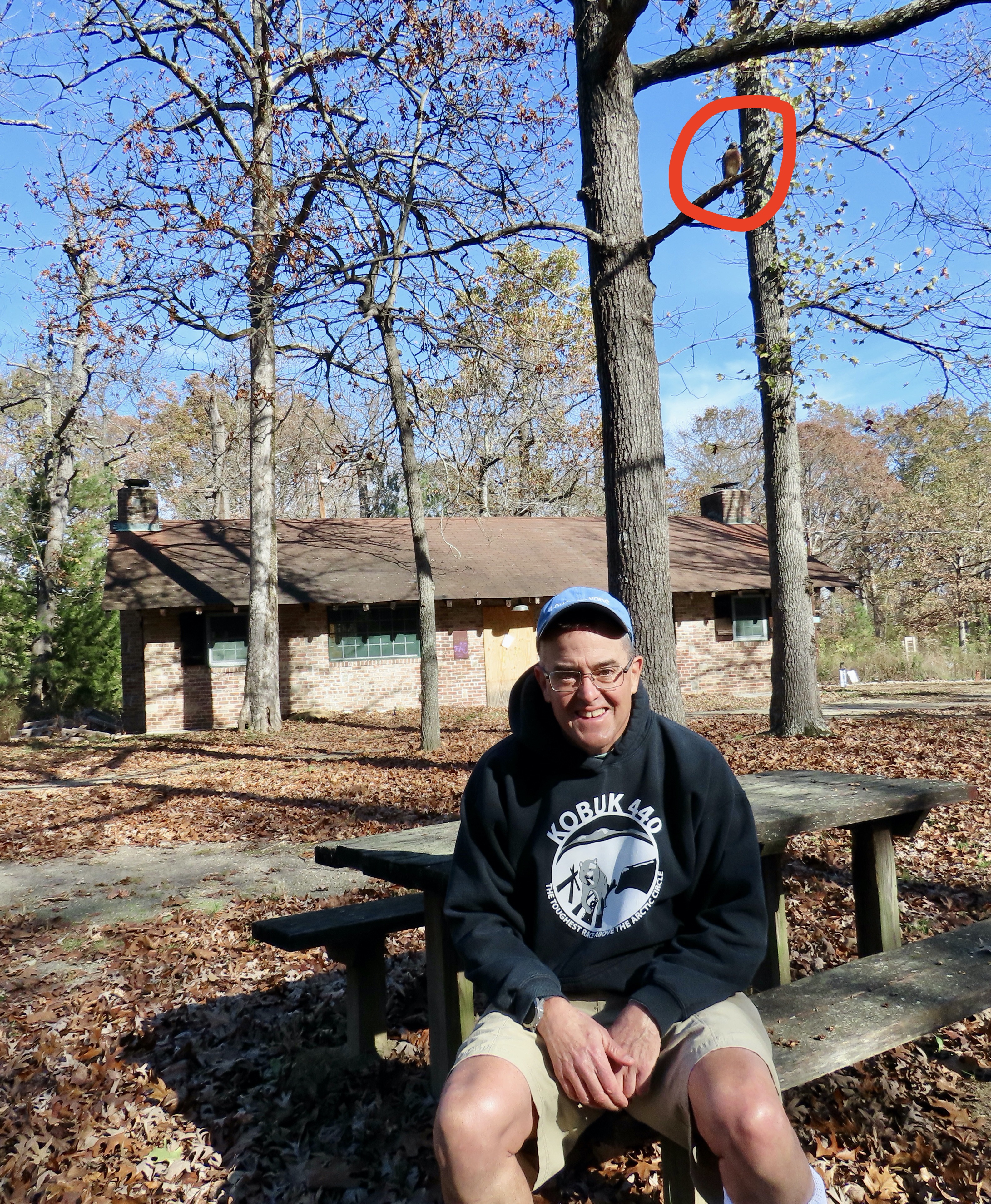 My friend Ray and I were hiking at Bryan Park one lovely morning this week. We sat down at a picnic table to catch our breath – and a Red-shouldered hawk was perched almost over my shoulder! I’d never been so close to one before! Ray took this picture: