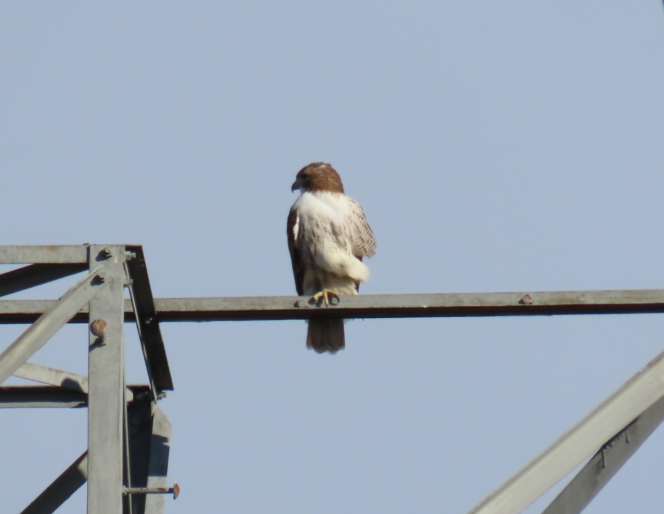 I got some “double” red-tails on Wednesday morning, but they had their backs to me and the light wasn’t good anyway. A couple hours later, one had flown off but the other turned around to face the sun: