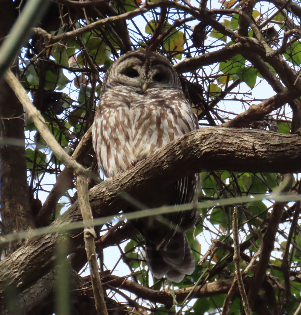 I actually photographed this owl about ninety minutes before the bluebird. But I wanted the bluebird on top of this post. I love bluebirds – they remind me of my dad, and they make me smile even apart from that. But I only ever glimpse bluebirds, or watch them flit. It’s much easier to breathe and think and relax and be mindful when owl watching: