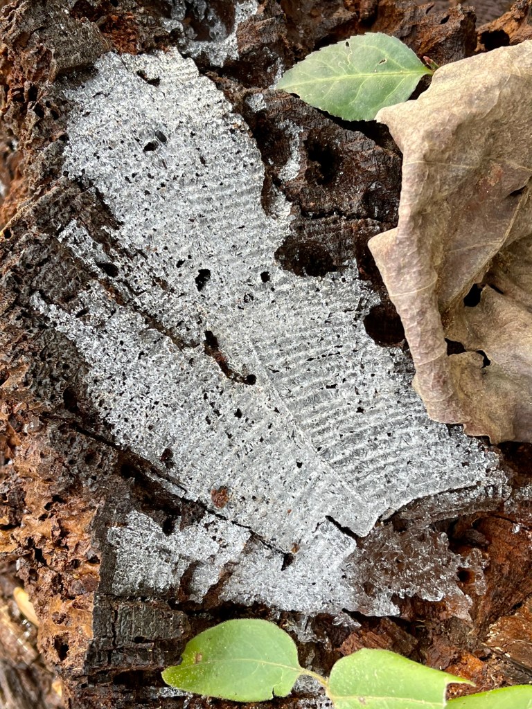 Also while we were hiking yesterday we saw this ice formed on the rings of a fallen rotting log.