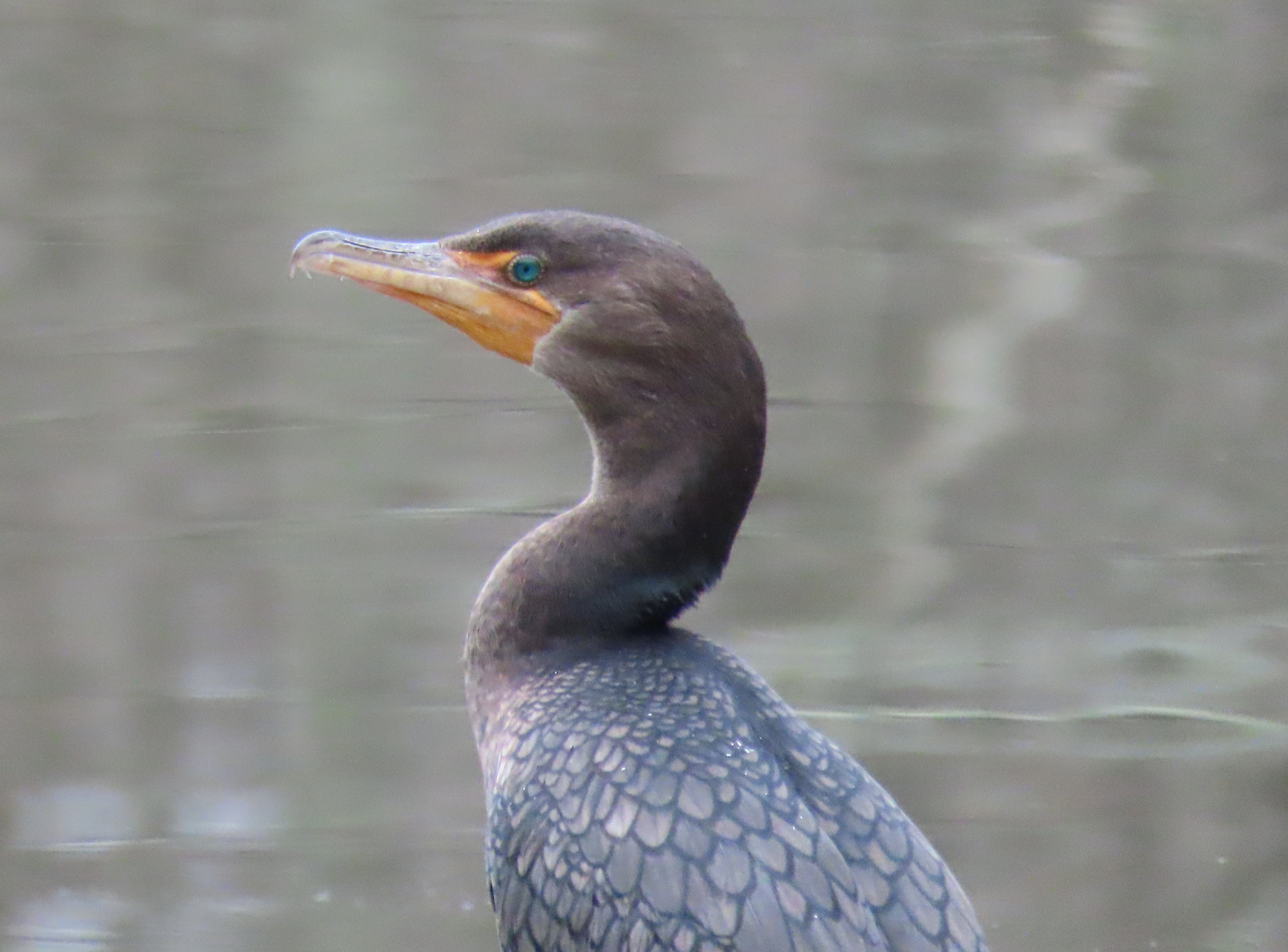 Yikes! I don’t have a million pictures today! Well, short blog post, no worries. I did get an interesting (IMO) image of a cormorant earlier this week. I called this picture “Sinatra” because of its remarkably bright blue eyes. Evelyn also pointed out its distinct feather markings. It almost looks like they’re painted on: