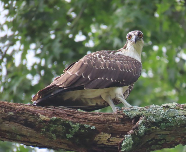 The mobbing had already been going on for some time before we walked up. The adult had enough and flew a few yards away. The youngster turned around and faced in the direction the adult had just flown. I took this picture just before it flew off to follow the adult: