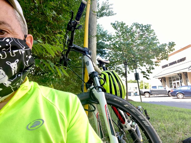 Early every year I organize my race schedule. Since I don’t do Ironmans any more, it’s not demanding. I had a couple of 5k’s scheduled this year and two sprint triathlons. Thanks to coronavirus, they all got cancelled! Since I wasn’t working much and my races were cancelled and the Y was closed (I couldn’t swim), I started riding my bicycle several times each week at West Creek. On April 1 I rode 16.5 miles in the office park. Between then and August 31 I did a hundred of those rides! The Y opened back up on a limited schedule so I took a swim and it went well. So Monday (September 7) I reserved a lane in the pool for Tuesday morning at 9:00. I put my bike on top of my car and brought my running shoes with me and drove up Tuesday morning and swam a mile. What a treat!