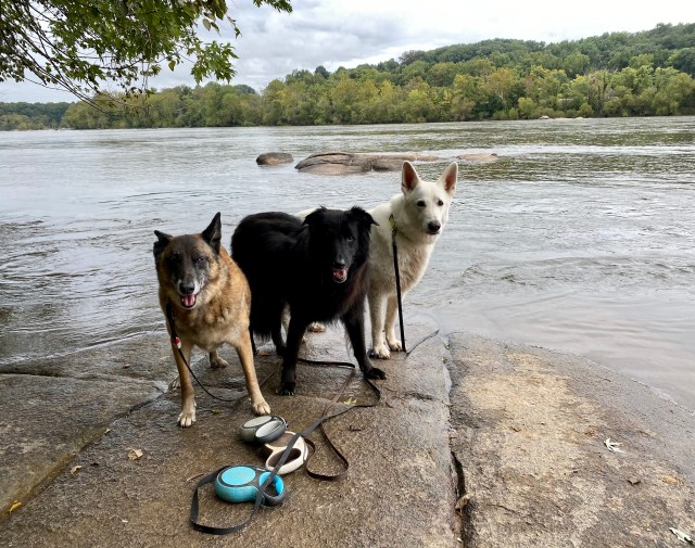 Mackey on the left, Turner in the middle, Yuki on the right – James River in the background.
