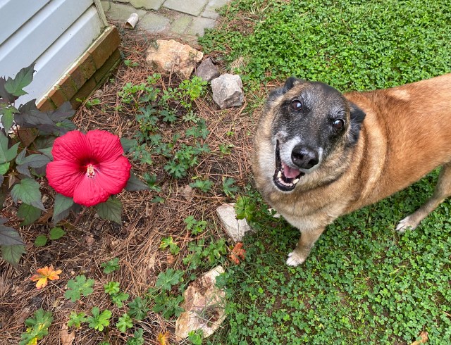 About this time, a Henrico Animal Protection Police truck pulled up on the side of the road and put on his flashing lights so traffic would give us a wider berth. I was grateful; it’s a narrow, busy spot. Here is a picture of the truck when it pulled up: